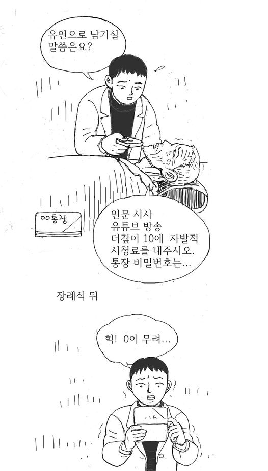 이후 노인은 병실에서 자신의 핸드폰으로 날마다 문제의 그 유튜브 방송을 보았다.