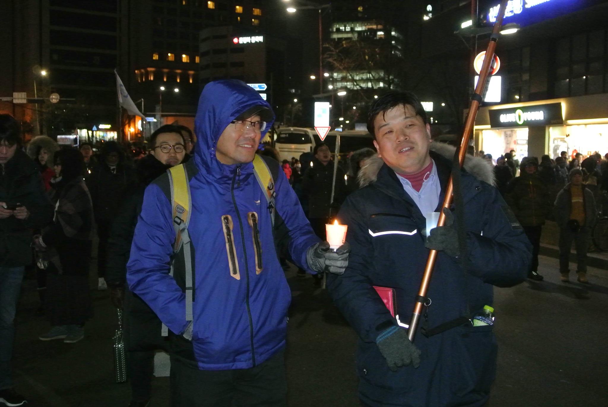 헌법재판소로 행진은 서울시민연대 대표이신 전상봉