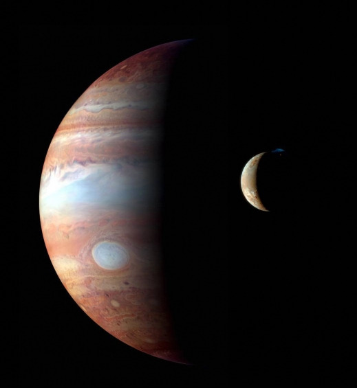 위성인 이오의 모습이 절묘하게 잡혔다.